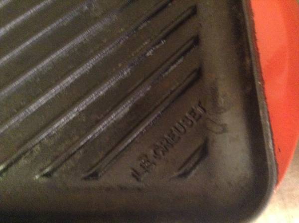 Le Creuset 23 Skilllet & 32 Grill in excellent condition! Made in France.. Clean and ready to use.. Skillet fry pan is 9" and Skinny Grill 32 size is Overall: 15" x 8 1/2" x 1 1/4" high (including handles).