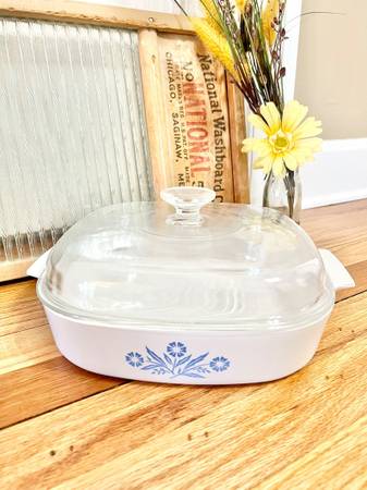 Hi. I'm selling my vintage 1960s Corning Ware Blue Cornflower Electromatic Skillet with Casserole Dish. In like new condition. No stains, crack, and damage anywhere. This Vintage Corning Ware Electromatic Skillet with Blue Cornflower Casserole dish is amazing! The Electromatic Skillet will keep all of those dishes that you prepare nice and warm. The skillet is fully functioning and comes with a beautiful Blue Cornflower Casserole Dish B-40 with Glass Lid. The 2Q Casserole with pyrex lid looks amazing and is perfect for cooking for single and small family. Electromatic Skillet: 16" long (handle to handle) x 10.5" wide x 3.5" tall (to handle). Blue Cornflower Casserole Dish with pyrex lid: 12" long (handle to handle) x 10" wide x 2.25" tall. Now is your chance to grab this rare piece before it's gone. Selling now for $200. Cash only