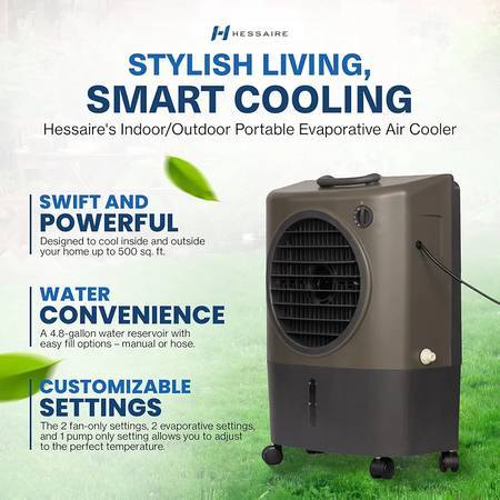 Hi. I'm selling my Hessaire MC18V Portable Evaporative 500 Square Feet Swamp Cooler. In like new condition. Gently used for 3 months. HESSAIRE’s evaporative cooling fans are designed to pull hot, dry air through a water-soaked filter using a fan to decrease the ambient temperature. The MC18V evaporative cooling fan is optimal when used in hot, dry climates to filter ambient air while increasing the moisture and delivering 1,300 CFM of cool airflow. Hessaire’s MC18V has a 4.8-gallon water tank creating up to 3-4 hours of use. The built-in float valve and garden hose adapter allow for easy connection and continuous water flow without overflowing your tank. Fill tank, connect power, place unit in a well-ventilated area, flip the switch, and you're all set. Before storing, run for 30 minutes on fan to dry the filter, to prevent future mildew. Paid $200 at Amazon. Selling now for $140. Cash only