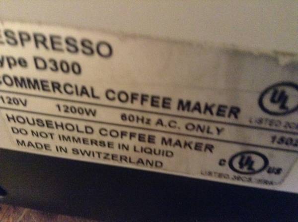Nespresso D300 Commercial Espresso Machine Excellent condition . Vintage mode Made in Switzerland.. 1200watts.. Was at my Uncles cabin in Tahoe.. Steams milk Makes great espresso as you can see pics..Uses the small Nespresso capsules or you can refillable types to make your own capsules... Can demo for buyer before purchase. Small nick on top edge side of water tank..no leaks ...sSelling set for $79 price firm! Email or call if interested!