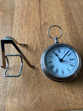 4” desk clock. Pocket watch design Case is crafted of brass. Features quartz movement that ensures accurate timekeeping. Designed for display using the included easel. New battery included. Pick up...