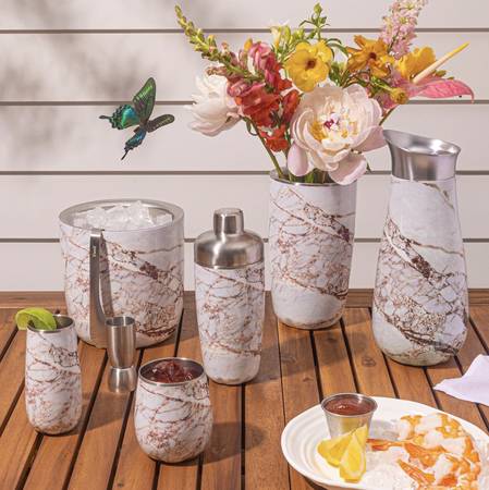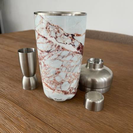 Take your mixology game to the next level with the S’well Cocktail Shaker. This sophisticated shaker and stainless steel jigger keep cocktails and mocktails measured, mixed, and chilled for effortless entertaining.