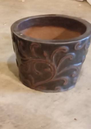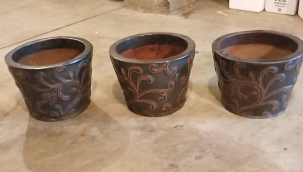 Three gorgeous terracotta planters are up for grabs! Each planter boasts stunning scrollwork designs and a durable construction. With three drainage holes, they're ideal for direct plantings or as decorative containers. Dimensions: 15" diameter x 12" height x 12" base. Buy one, two, or all three at individual prices!