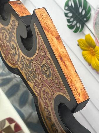 Style: It features an ornate, intricate design typical of Chinoiserie or possibly Moroccan styles, with detailed scrollwork and a distinct shape, particularly at the crest.