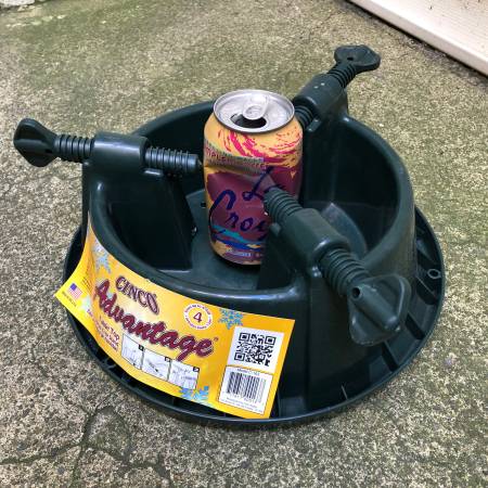 Thick molded plastic, stand for a medium to large tree (5 feet to 8 feet). ($15)