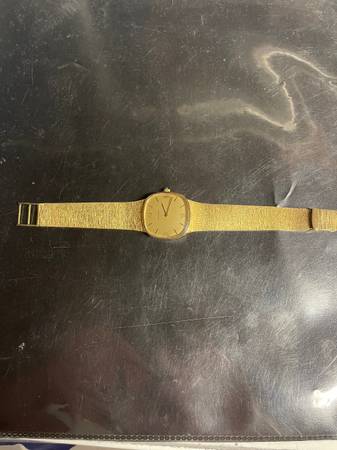14 Karat Gold Movado Watch for Sale. This Mechanical style watch 14 Karat Gold Watch with original 14 Karat Gold Band was in the showcase at Neiman Marcus in San Francisco.
