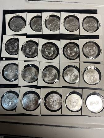 American Silver Eagles ( X 20 ) in Choice Condition for sale. All are Common Dates