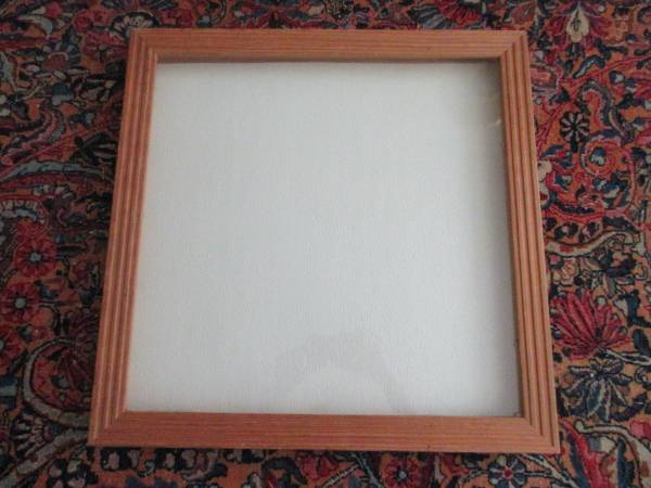Flat flea market table-top display. Wood and glass. For jewelry and trinkets. 20" square. 1.75" high.