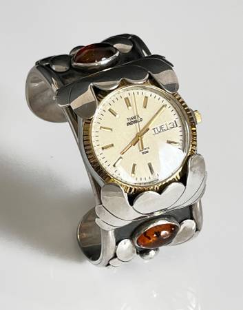 Excellent Southwestern (Possible Carol Felley), Heavy Sterling Silver Watch Cuff 130.9 Grams - With Timex Indiglo Watch