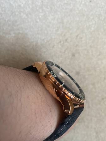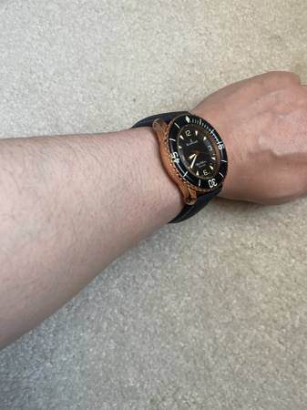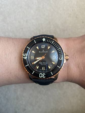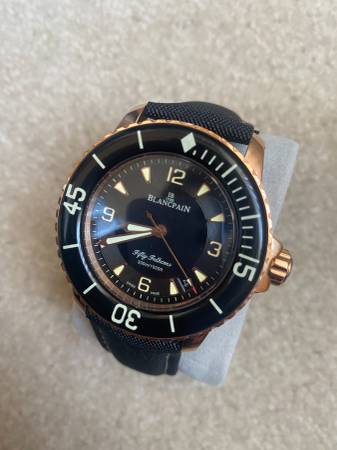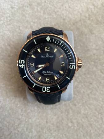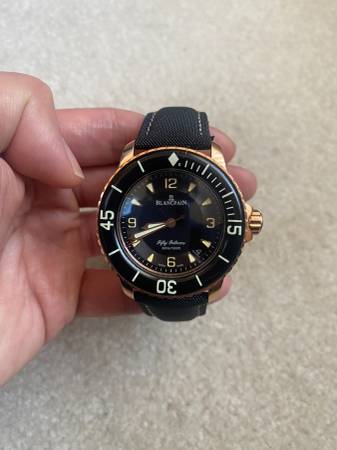This is a replica copy Blancpain Fifty Fathoms Black Dial Rose Gold Case automatic watch. 45mm