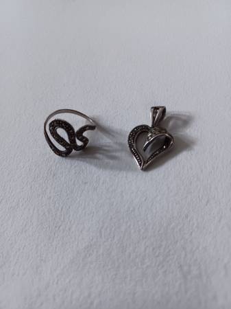 Silver ring and pendant with marcasite gemstones with some imperfection - couple of lost stones. Cash only. Buyer picks up in San Francisco.