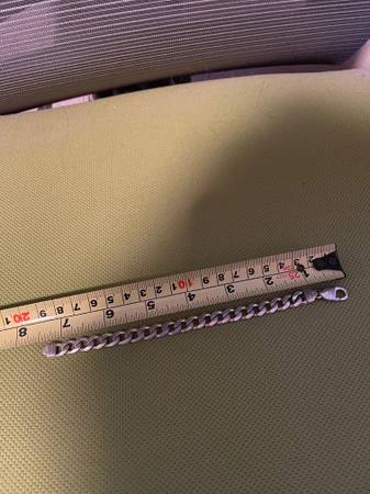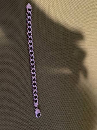 I am selling Sterling Silver Bracelet 7.5 inches long and 8mm wide in great condition. Great for a Man or Woman. If you are interested, please text me at show contact info