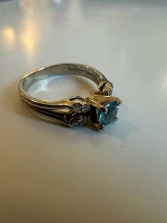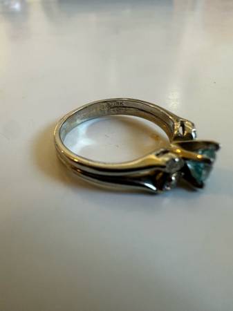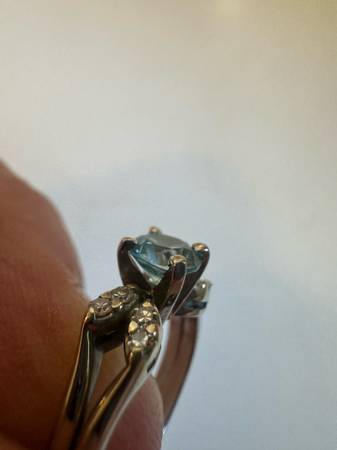 Vintage gold and diamond rings for sale. Diamond wedding and engagement ring set $1500 White gold ring with blue topaz and small diamonds $450 Gold ring with large jade stone $800 10k gold class...