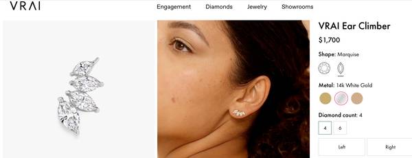 VRAI Diamond Ear Climber follows the slope of your ear, creating a naturally brilliant curve with each diamond's facets capturing light at every angle.