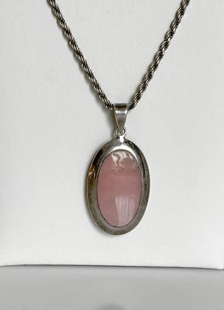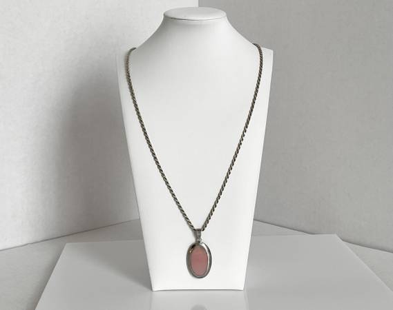 VTG. Sterling Silver Pink Mother Of Pearl Pendant 28" Necklace 26.9 Grams