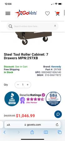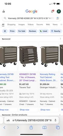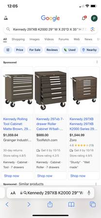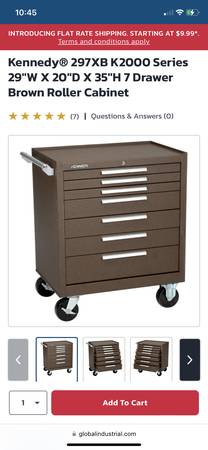 Kennedy® 297XB K2000 Series 29"'W X 20"D X 35"'H 7 Drawer Brown Roller Cabinet, with extra Abus file Cabinet Locking Bar.