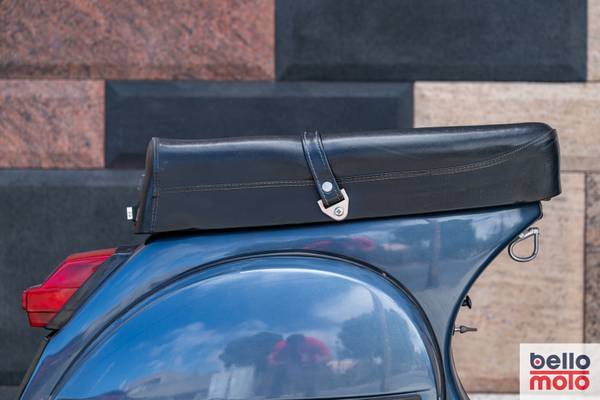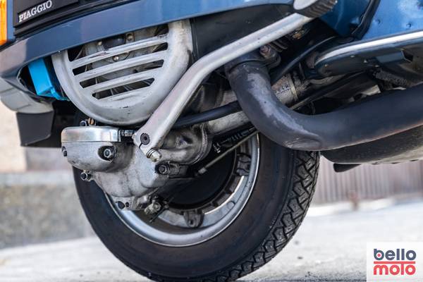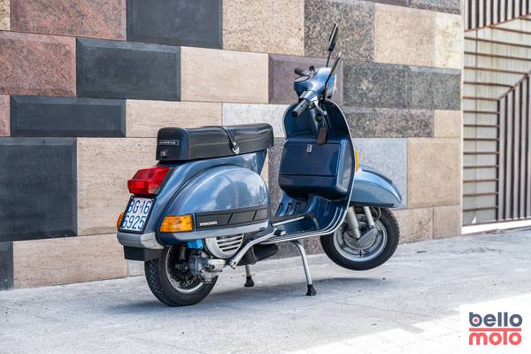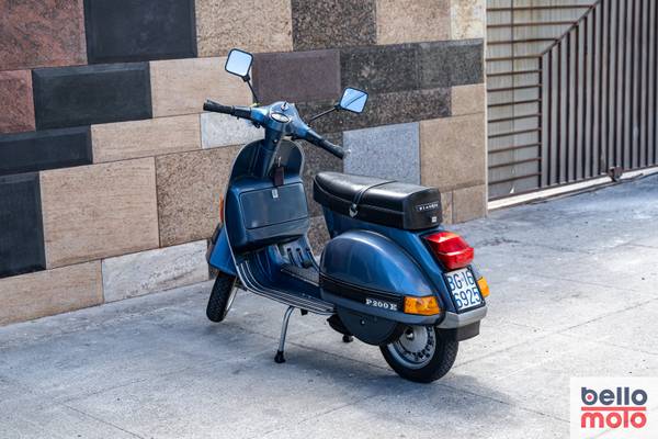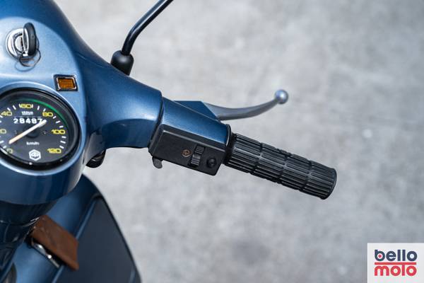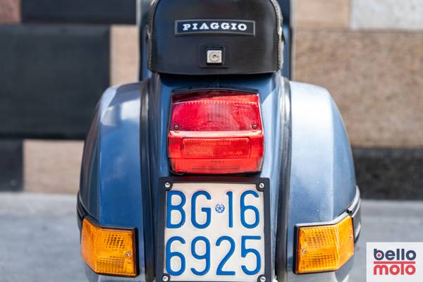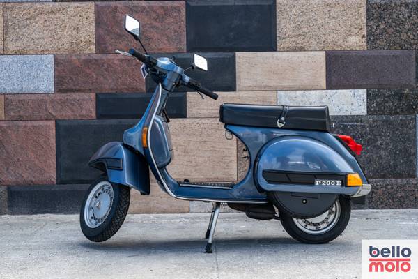 The P200E was among the most popular models of the Vespa range. This one is a European market scooter, so it has the nice touches that exemplify the Euro version. These features include the replaceable bulb headlight, nice flush-mounted tail light, and the small fuel valve lever.