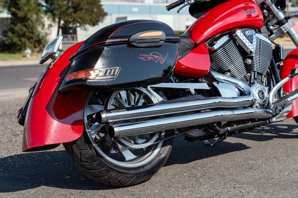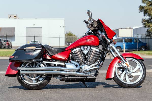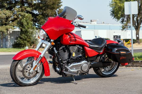 Looking for a classic American cruiser with bold style, touring comfort, and road-ready upgrades? This 2006 Victory Kingpin in striking red is outfitted with a front fairing, tall windscreen, and hard side bags—perfect for long highway runs or weekend cruises. With 47,557 miles and a clean California title, this Kingpin offers V-twin power and a comfortable ride that’s ready to roll.