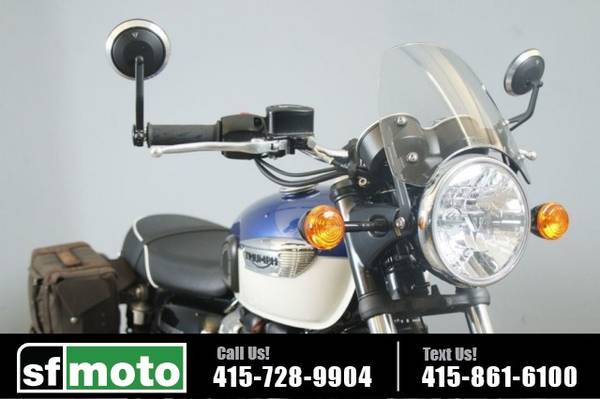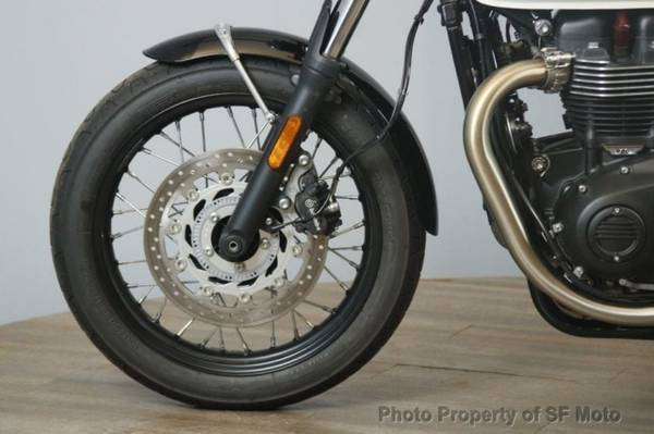 2022 Triumph Bonneville T100 Two-Tone Pre-Owned 2022 Triumph Bonneville T100 Two Tone 🎨 Classic Charm, Modern Heart: The 2022 Triumph Bonneville T100 Two Tone ✨ The Perfect Blend of Heritage and Low-Mileage Value Capture the spirit of the original British roadster with this spectacular **2022 Triumph Bonneville T100 Two Tone**. Available now at **SF Moto**, San Francisco's trusted, family-owned dealership for over 35 years. With only **1,842 miles**, this motorcycle is barely broken in and presents an opportunity to own a virtually new icon at an unbeatable pre-owned price. The T100's striking Two Tone paint scheme and classic styling offer an unmatched curb appeal, making every ride an event. This is the authentic Triumph experience, backed by modern reliability and protected by our complimentary **SF Moto 90 Day Signature Warranty**. Enhanced Performance and Integrated Technology The 2022 T100 features significant updates, including a lighter engine and chassis components for improved agility and a more responsive ride. It delivers the signature torque-rich character Triumph is known for, while incorporating essential modern safety features: Upgraded High Torque Engine: The 900cc Parallel-Twin engine was refined for 2021/2022, offering more power and lighter weight for improved performance. ABS (Anti-lock Braking System): Provides enhanced safety and braking control, paired with a high-specification **Brembo** front brake caliper. Switchable Traction Control: An electronic aid that ensures optimal power delivery and stability in varied road conditions. Torque Assist Clutch: Reduces clutch lever effort, making stop-and-go city riding significantly easier and less tiring. Engine Immobilizer: Integrated security feature for peace of mind. Essential Specs Experience the responsive power and manageable dimensions of this modern classic: Engine: Liquid-cooled, SOHC, 270* crank angle **900cc Parallel-Twin**. Max Power: Strong **64.1 HP** @ 7,400 rpm. Max Torque: High **59 lb-ft** delivered low in the rev range (3,750 rpm) for effortless acceleration. Transmission: Reliable **5-speed** gearbox. Wet Weight: Approximately **503 lbs**, lighter than previous generations for nimble handling. Fuel Tank Capacity: **3.8 US gallons** (14.5 liters). Suspension: Quality **41mm cartridge forks** and twin rear shocks with pre-load adjustment. The SF Moto Advantage: No-Tariff Pricing By choosing this exceptionally low-mileage, pre-owned Triumph, you access a smart financial advantage: you **enjoy No-Tariff pricing**! You save money by avoiding the fees associated with new motorcycle imports, allowing you to invest in a superior, warrantied machine at a better overall value. This 2022 Bonneville T100 with its beautiful Two Tone finish is ready to be the centerpiece of your garage and your next adventure. Would you like me to tell you the specific colors of the **Two Tone** paint scheme? Please come by, call, text or email us for the total price All listed pricing includes the use of any and all factory incentives and rebates Pricing does exclude any dealer document preparation charges, dealer markup, dealer set-up, destination charges, government fees and taxes or any applicable finance charges Call or Text us at(415) 728-9904 SF Moto is open Monday - Saturday 10 am - 6 pm. Be sure to check out the 58+ photos we post on our website, sfmoto.com , of all of our pre-owned motorcycles and scooters. ALL of our pre-owned inventory INCLUDES our SF Moto Signature 90-Day Warranty and Lifetime Service Discount! WARNING: Operating, servicing and maintaining a passenger vehicle, or an off-highway motor vehicle can expose you to chemicals including engine exhaust, carbon monoxide, phthalates, and lead, which are known to the State of California to cause cancer and birth defects or other reproductive harm. To minimize exposure, avoid breathing exhaust, do not idle the engine except as necessary, service your vehicle or vessel in a well- ventilated