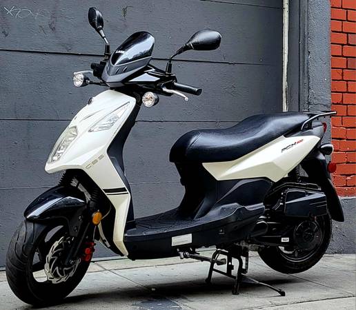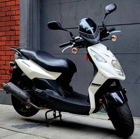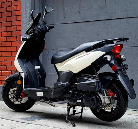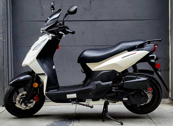 It’s a fuel-injected 169cc scooter that tops out around 70 mph. Gets roughly 85–90 MPG and fills up with just about 1.3 gallons. Easily goes up steep San Francisco hills, even with two people.