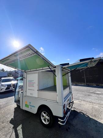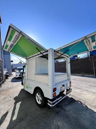 Electric tuk tuk plated registered and ready for you to turn it into any small business you want Has sub panel, water tank, mini fridge, LEDs, speakers and more goes 35mph and range of 60miles...
