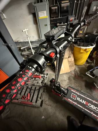 So I just bought brand new nanrobot LS7+ scooter and it has only 1 mile on it. Spent $2500 online end of August but I threw the box away and cannot return it. It’s a little too big and heavy for me to carry up my stairs everyday to my apt. I’m looking to trade maybe for another dual motor scooter or any scooter plus cash. I’d even sell scooter for $1600 right now. That’s $900 off and it still has all the plastic film on it and only one mile. It does 74 mph and lasts over 60 miles on full charge. Has knobby off-road tires. Hydraulic brakes it’s fully loaded look it up.