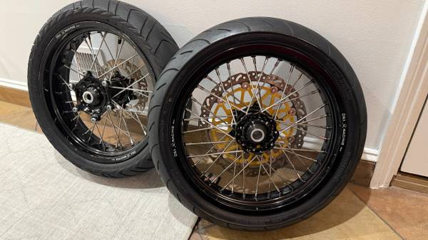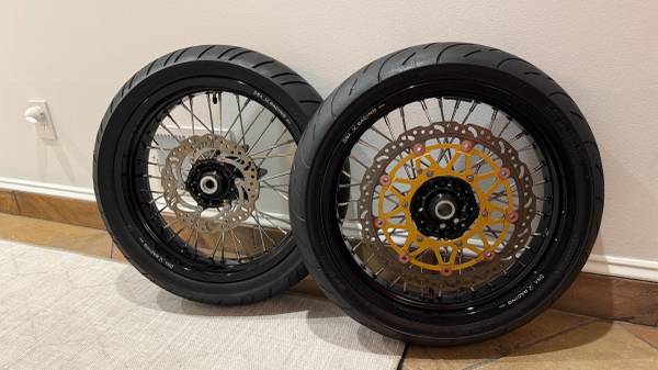 Selling a used set of DNA Racing Supermoto Wheels that came off a 2009 KTM 450 XC-F. These are built on DNA Racing Hubs and Rims and are the perfect bolt-on package to convert your dirt bike for street use. Selling them as they are just sitting and haven’t gotten used.