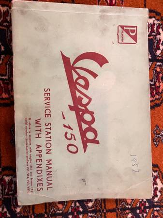 Original Vespa 150 service station manual, covering VL1, VL2, VL3, VB1, in very nice shape, not a reproduction, $75 cash