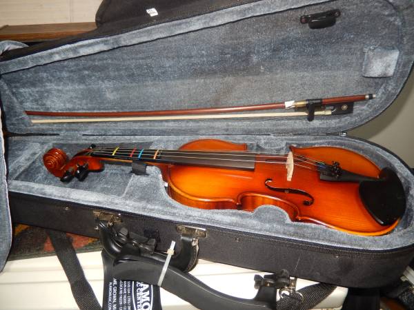 .Well maintained 1/2 size, student Violin, labeled Sebastian. Comes fully set up with a Good Bow, lively strings, in a padded Case.