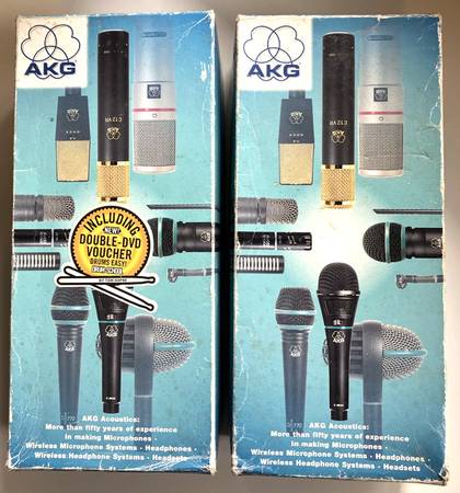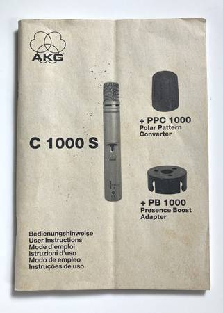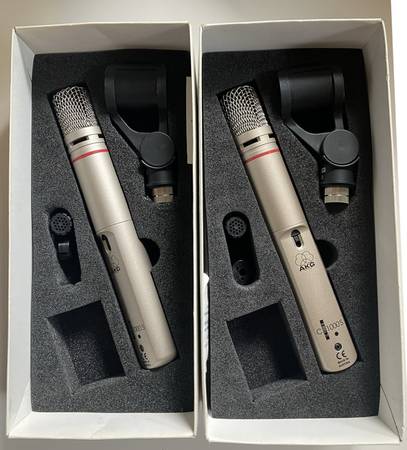Selling two AKG C1000S mics. These are nice sounding condensers. They come with their original stand clip an insert that changes the pickup pattern from cardioid to hypercardioid (tighter) and another adapter that adds a presence boost. They’re great for recording AND stage work, on everything from acoustic guitar to vocal to drum overhead. They can be run on phantom power or a 9V battery.