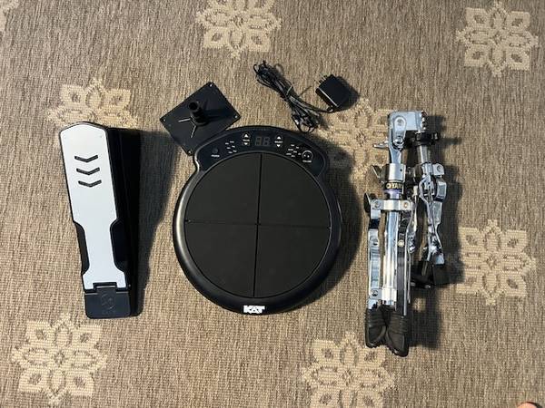 Here is an electronic drum setup that can fit into your backpack or into a very tight space. I don't think I used this for more than an hour. The stand and pedal are Yamaha. This also works as a midi controller for drum machines or synths.