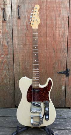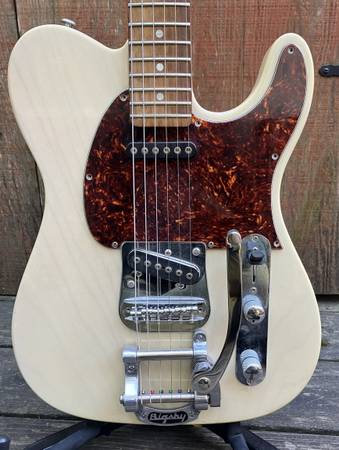 It comes in a well-padded gig bag. It weighs in at exactly 10 lb. with the Bigsby.