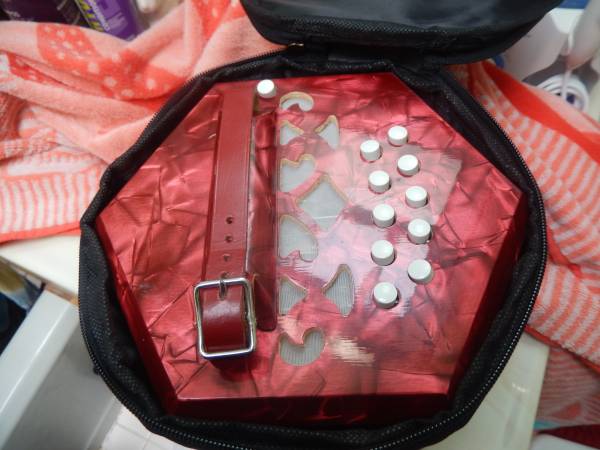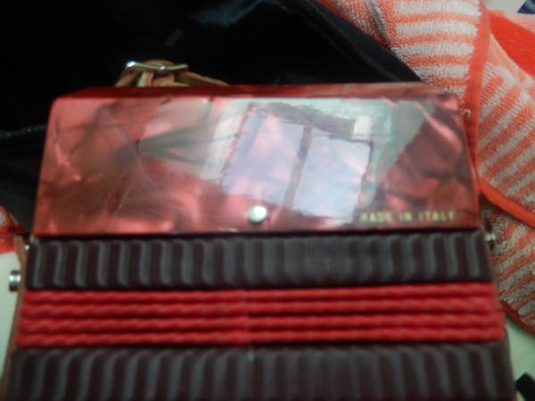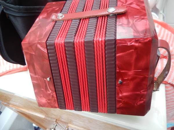 Lovely, blazing red Italian made Concertina. Great bellos, great tone, new gig bag. 20 key , diatonic, anglo model.
