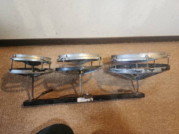 The exterior shows its age: the frames have cosmetic wear and some paint loss, and the mounting bar has chips and scratches (see photos). Despite the cosmetic wear, the drums remain fully functional and sound great. No stand is included – this listing is for the three Rototoms with the mounting bar only.
