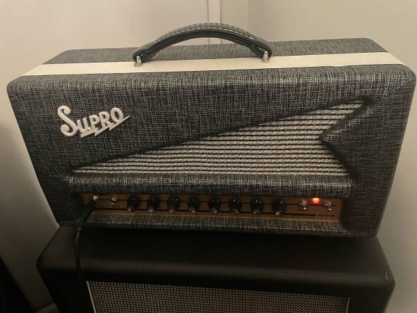 Supro's 1696RTH Black Magick Reverb electric guitar amplifier head is engineered to replicate the sound of the highly customized Supro that Jimmy Page used to record much of the early Zeppelin guitar tracks. Based on the acclaimed 1695TH Black Magick head, the Black Magick Reverb is even better with a tube-driven spring reverb, a 2-band EQ, and a Master volume knob, for more sonic flexibility. And the two channels can be run independently or in parallel for even more crunch and tone-shaping options. The Supro 1696RTH Black Magick Reverb amplifier head will instantly take you back to the tones of "Good Times Bad Times" and "Communication Breakdown