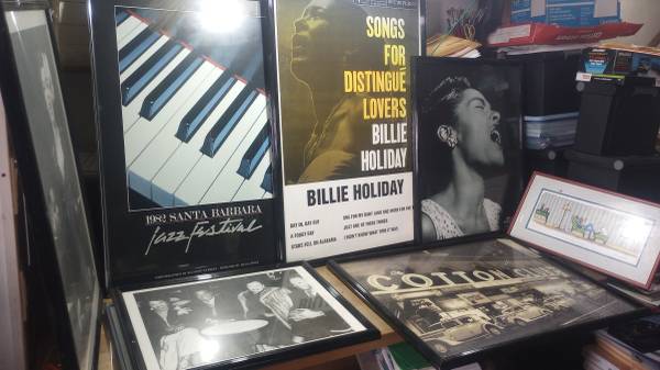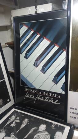 These are from the early 90s I estimate. Santa Barbara Jazz poster may be slightly older. They are used with minor imperfections to the frames scratches nicks but nothing major and still good condition.