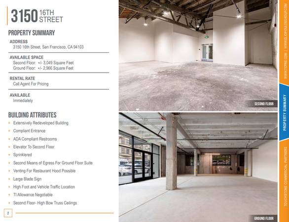 keywords: mission district, 16th street, second floor, retail, services space, redeveloped building, high foot traffic, ADA compliant restrooms
