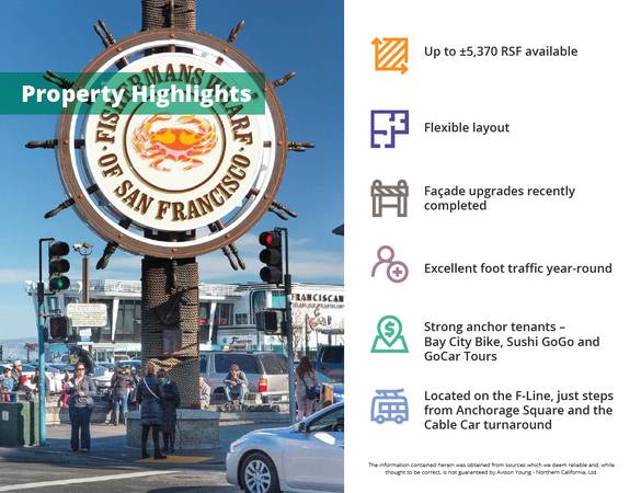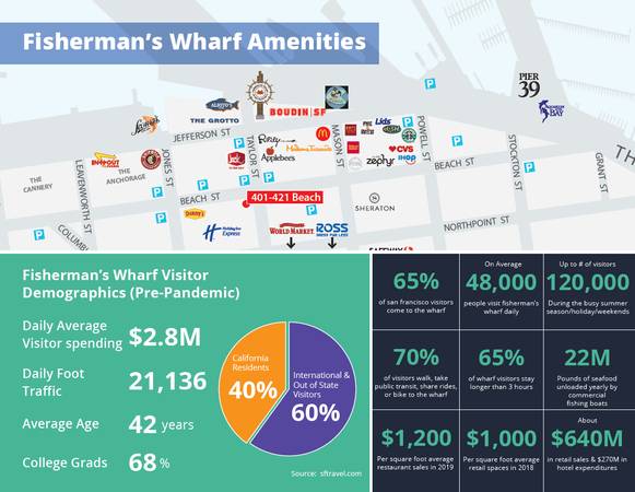 NEW RENT PROMOTION! $25/SF/YR Modified Gross (for qualified tenants for 1-2 year leases)! Seeking best-in-class operators! Retail for Lease - Fisherman’s Wharf MOTIVATED LANDLORD! 401-421 Beach...