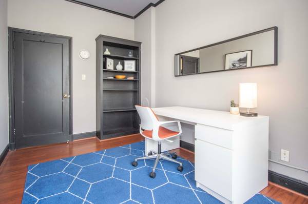 Suite A is an office for one person. It's is a perfect space for any remote worker, solopreneur, satellite office or salesperson. The suite is tastefully decorated and includes period built-in shelves and the beautiful northern sunshine. The large windows offer tons of light as well as airflow.