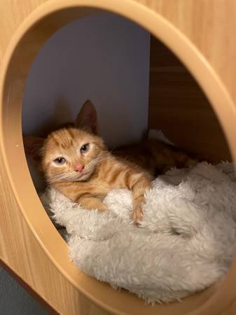 I am rehoming this sweet little kitten he’s 8 weeks old now already litter trained & eating hard food. I am asking a small rehoming fee for him.