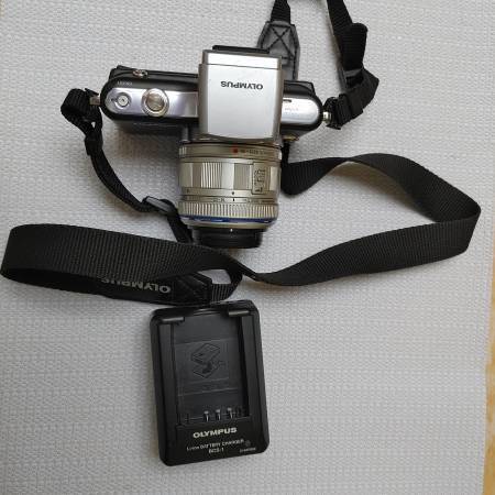 Used Olympus camera for sale. The classically styled Olympus camera PEN series of Micro Four Thirds interchangeable lens cameras has given Olympus the opportunity to draw attention to the small, popular half-frame models, has 12MP Live MOS sensor 120 Hz 'Fast AF' focus system, Clip-on flash (included), full HD movies in AVCHD format, In-body (sensor-shift) image stabilization system.