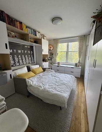 The bedroom is a good size, with a closet that really accommodates everything. The kitchen and bathroom are shared, but there are just two of us, so it's not a huge concern. You receive a parking space, which is excellent. The neighborhood is quite peaceful, yet it is near to everything - NewPark is right there, BART is about 15 minutes away, and you can easily access 880 or Dumbarton. There is no trouble getting to Fremont or San Jose.