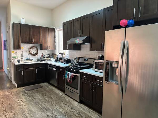 In addition to rent, each resident pays $500/mo in house dues. This covers all your food, utilities, community expenses, monthly house cleaning, furniture, kitchenware, house projects, and so on.