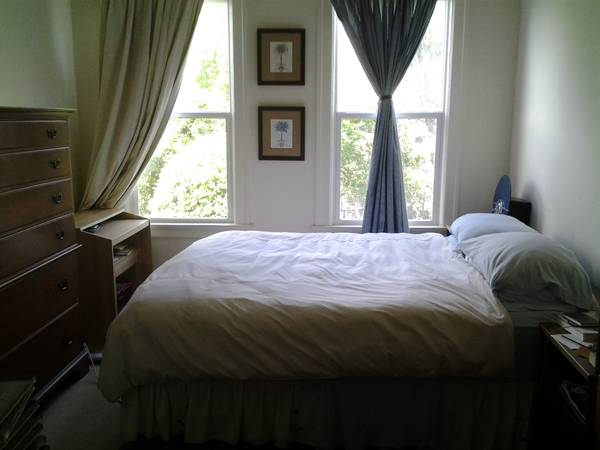 Available 10/01/2025. 11' x 13' room with small walk-in closet for rent for single person in a furnished room in a 3-bedroom one-bath flat with two male occupants on Dolores St with city views in a quiet neighborhood in Dolores Heights. House has front terrace and accessible back yard. Includes Wi-Fi Internet, water, electricity, in-unit washer/dryer, housekeeping service.