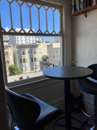 It's close to the Polk Street and the Marina night life. The room comes furnished with a bed, bedding and a desk and chair and has a large couches.
