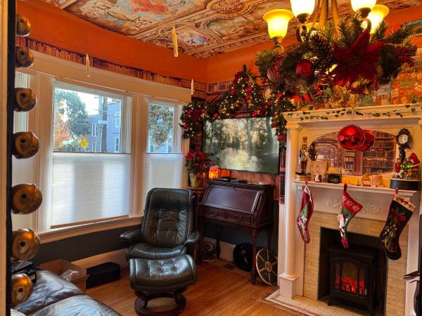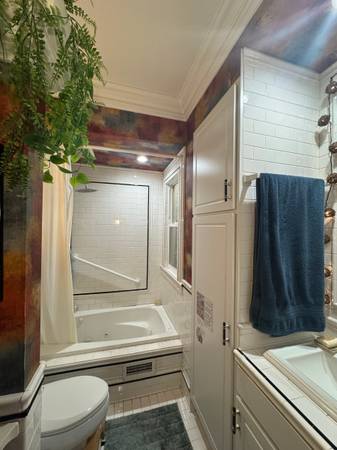 I am a building contractor, born in 1950. I personally remodeled the entire flat. It has a luxurious bathroom with a Jacuzzi tub, with heated toilet seat, and a towel warmer. There is a second toilet/reading room, a large kitchen, a light-well deck, and a lovely sunny fern garden. The common living room is set up as a library for quiet study, reading, an occasional writers' group, or daily yoga practice.