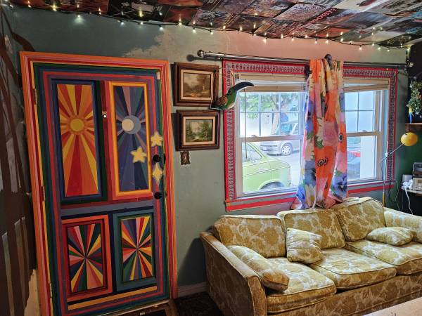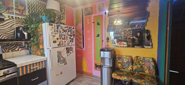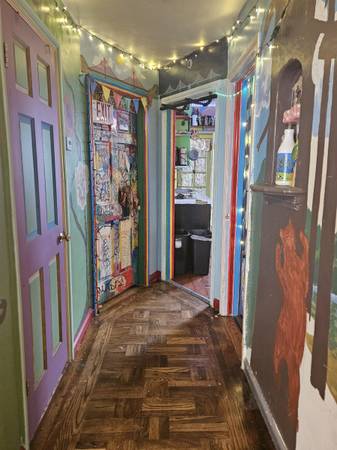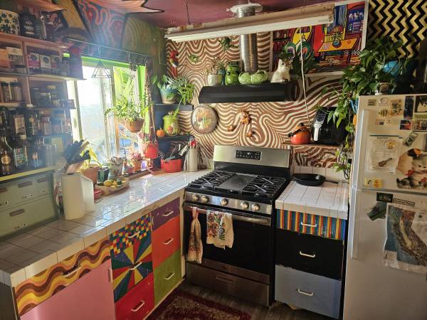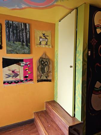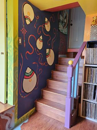 We have a large room in a beautiful 3 story 5 bedroom house in Bernal Heights available! We are a group of friendly creative individuals and have a colorful home full of murals and paintings. The room has a closet and nice window overlooking the backyard and the bay! The shared rooms include a large kitchen and nook, with 2 large pantrys, a big living room, 2 bathrooms with showers and bathtub, an outdoor patio, garden area, garage and laundry room. There are multiple bus lines that are nearby, including the 67, 23, 49, 14 and 23 bus routes. We are located right next to the 101 freeway and the Alemany farmers market. There are multiple very nice parks nearby including holly park and bernal hill. We are also a close walk from cortland avenue, which is full of great shops, including restuaraunts, grocery stores, a pet store, bars, coffee shops and library. If your interested in seeing the space send us an email with your name, number and a little about yourself and we can arrange a time for you to come check it out!