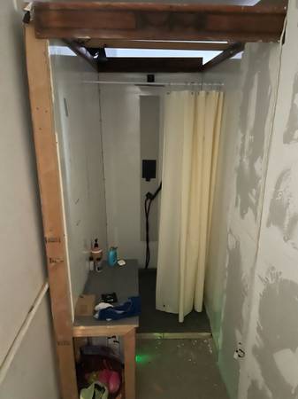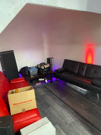 Shared common areas include: upstairs shared audio mixing-monitoring station + DJ performance area & home office/workshop area (~350sqft), plus a gallery/event/fully functional music recording live room space with tall ceilings (18') in the front of the building (~1000sqft) with lots of large windows with ample daylight, plus a private split downstairs bathroom and upstairs shower area, and finally a hospitality area: w/microwave, toaster oven, large nice new large + small refrigerator, coffee maker, purified water distiller, cold water dish wash sink, and ample storage areas.