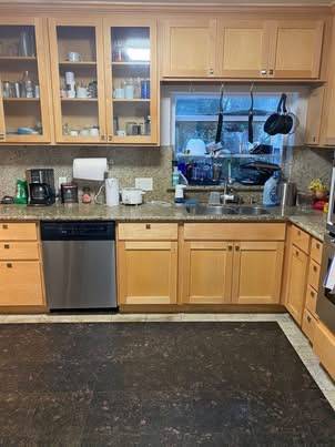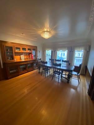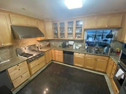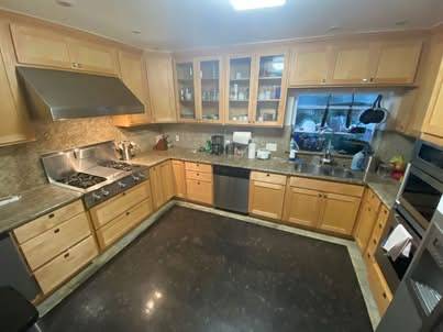 The house is spacious: two floors, two living rooms (one converted into a gym you can use), two kitchens, garage, back patio, and dining room.