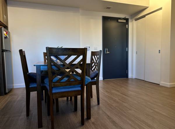 El estudio para compartir es ideal para un hombre, y cabe una cama individual.